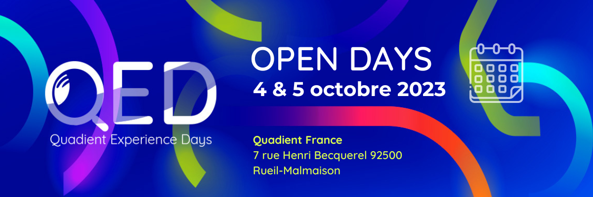Nous avons le plaisir de vous inviter aux QED, les Quadient Experience Days, dans nos locaux à Rueil-Malmaison, les 4 et 5 Octobre 2023.